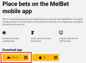 З мобільної версії Melbet зручно завантажувати додатки. Якщо ви часто робите ставки, рекомендуємо звернути увагу на додатки Мелбет для Android або iOS.